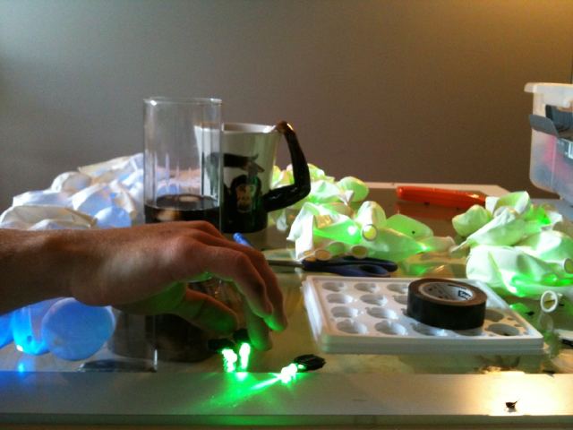 Will Knoll, who is involved with Protospace, brought his prototype of the JeLEDfish; an electronic device raised into the air with helium balloons with really neat oscillating purplish lights.
